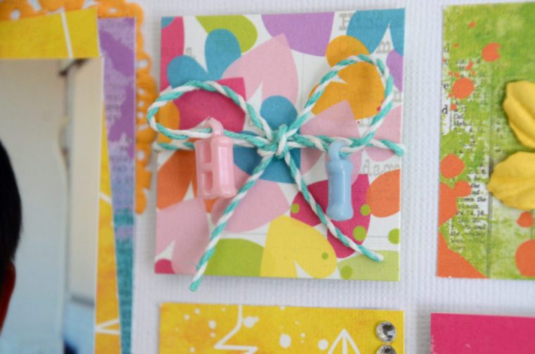 3.ポップアップさせたペーパーにトワインを巻きつけ、イニシャルのアクリルチャームをアクセントに☆