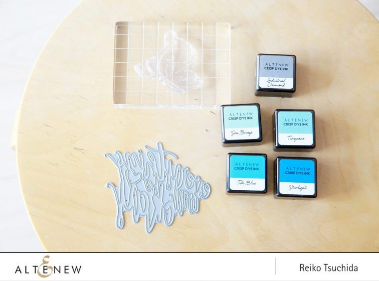 使用したのはこちらの材料です。黒インクでアウトラインをスタンプせず、グレーのインクを使うことで印象がやわらかくなりました。グレーインクはマストアイテムですね。