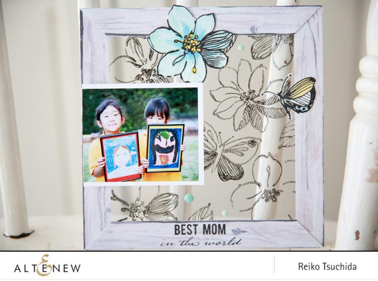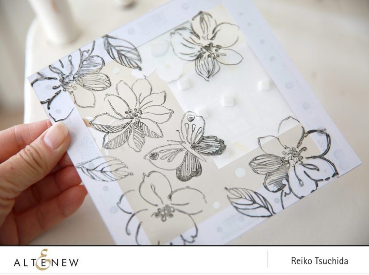 クリアシートに押すことのできる、Altenewパーマネントブラッククリスプインクを使用しています。商品や材料のリンクは、ぜひAltenewスクラップブッキングブログを参照ください。