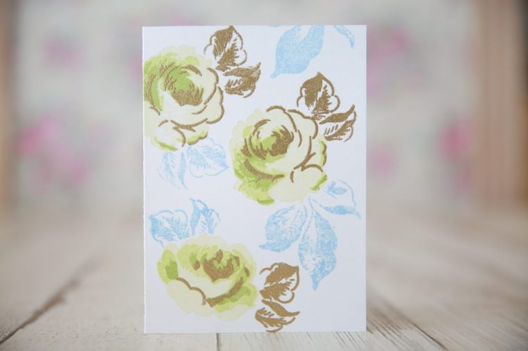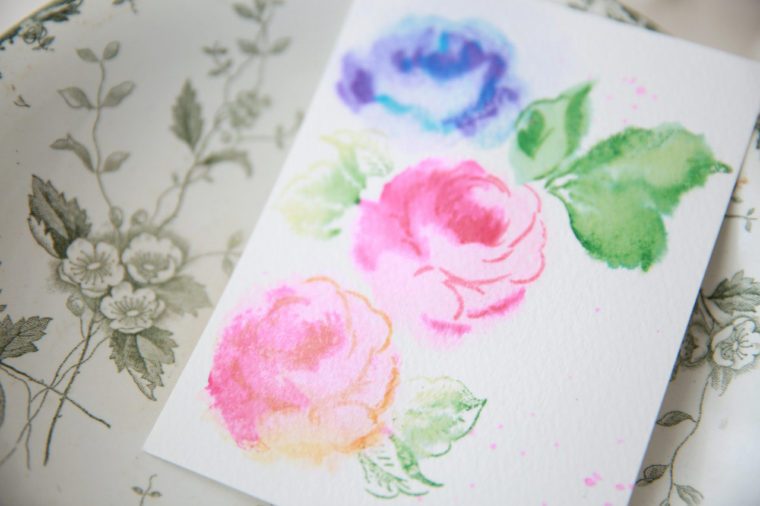 まるで水彩画のようなスタンプテクニックです。スタンプインク「メメント」を使用して、あっという間にできる水彩画調のバラを楽しんで。