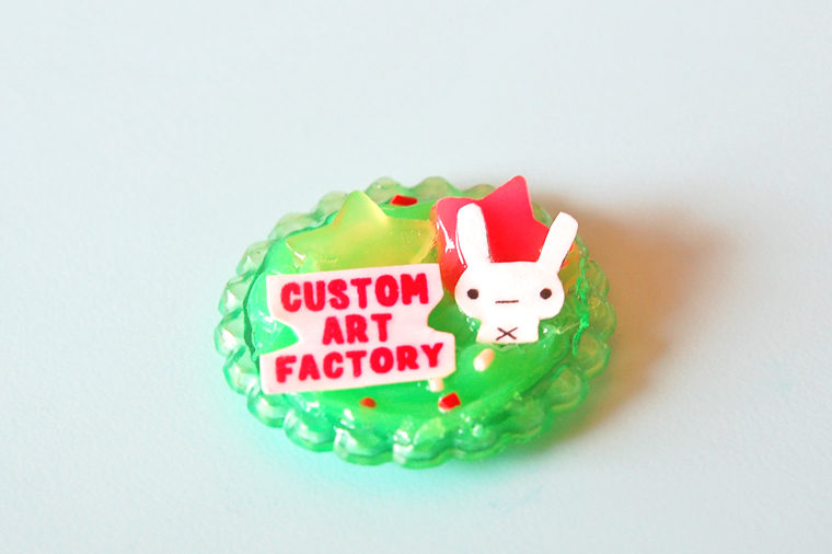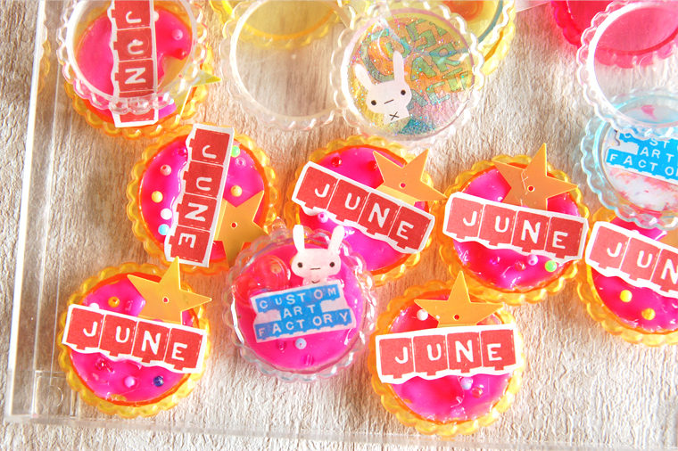 最後に中央にグル―を流し入れ、文字パーツなどをのせて完成です。