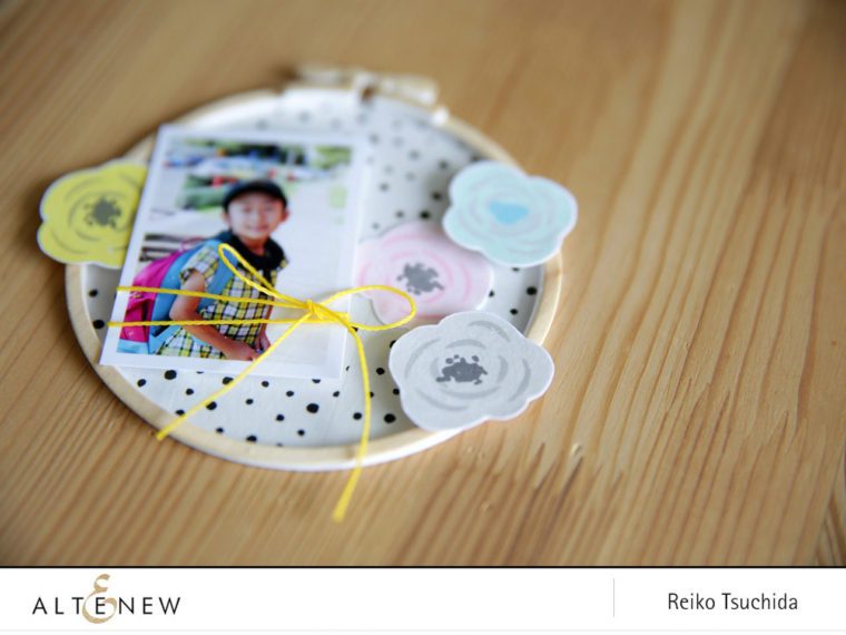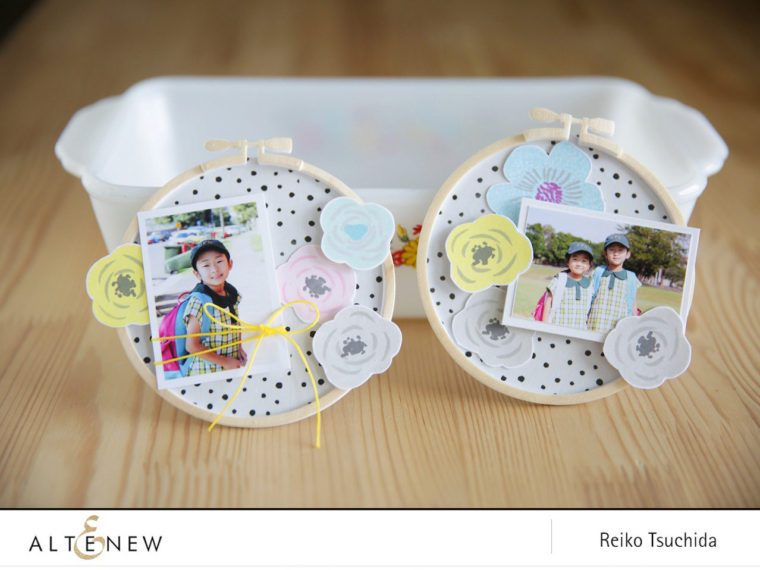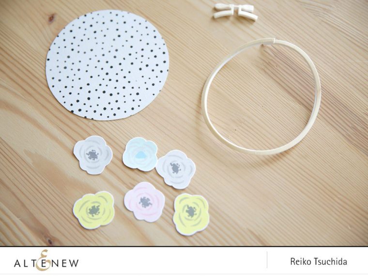 材料をそろえます。刺しゅう枠の抜型-Circle Embroidery Hoop Die Setを使って、木製シートとフォームシートの両方をカットします。枠の大きさに合わせて、パターンペーパーもカットしておきます。