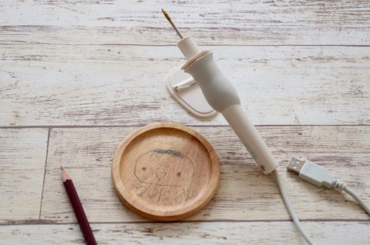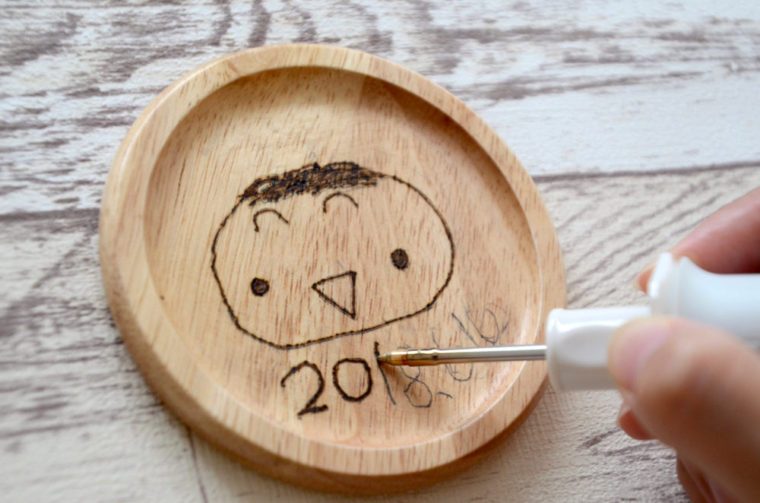 絵をヒートツールで焼きます。ゆっくりなぞっていくとうまくできますよ。
