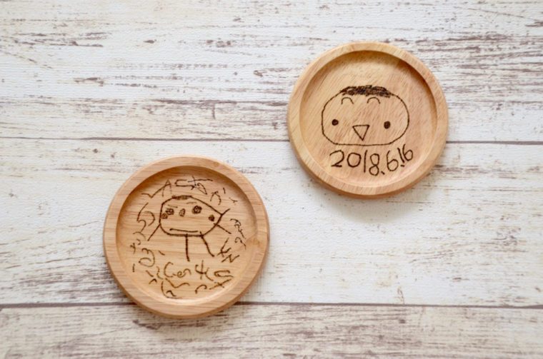 100円ショップで購入した直径10センチ程の木製のコースターに、子どもに絵を描いてもらいましょう。
