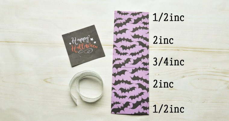 ハロウィン柄のペーパーやシールなどの飾り。リボン。テープのり。あればクラフトバサミ。