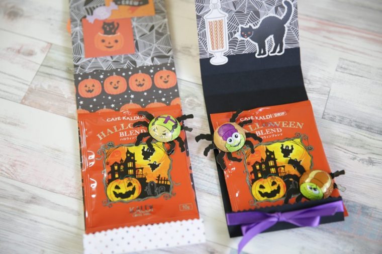 「トリック・オア・トリート」では子どもたちだけでなく、ママたちにもキャンディバッグに入れたお菓子のプレゼントを用意してみてはいかがでしょう?『マッチブック』スタイルのキャンディバッグはちょっとしたお菓子を特別なプレゼントにしてくれます!ドリップコーヒー&チョコレートをさり気なくプレゼント。