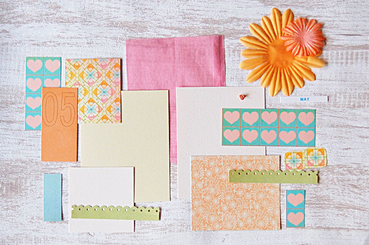 そこで第5回目となる今回は、YEARBOOK5月ページのキットを例にとって、簡単で失敗しない多色使いのテクニックを一つご紹介します。